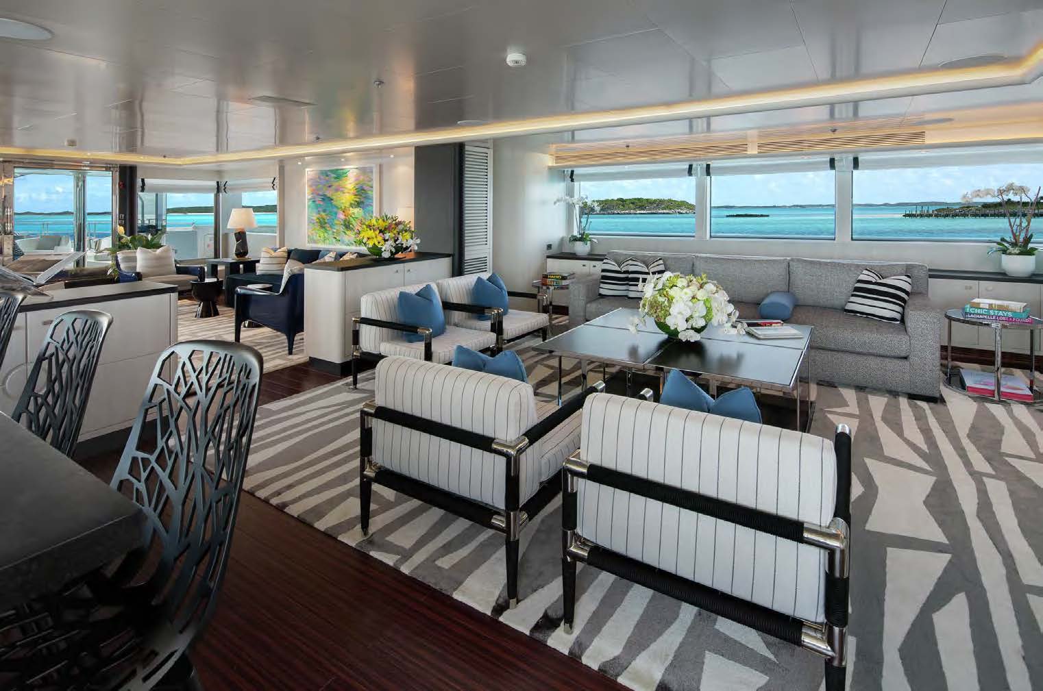 The interior décor has a cool, grown-up beach vibe and a great family layout which includes seven staterooms, sociable salon spaces and a large owner’s suite. Plus, the artwork displayed on board is curated by native Bahamian John Cox and rotates seasonally, giving a fresh, exciting selection each year.
