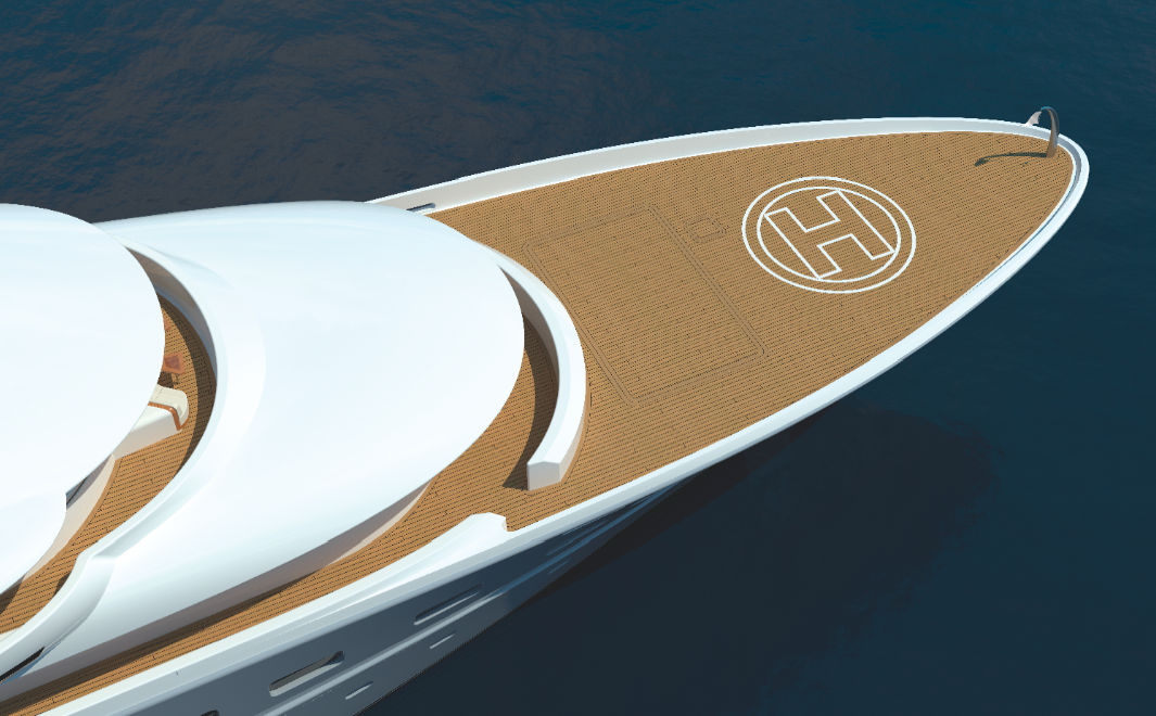 The side-opening balcony and fold-down transom door combine to create a wonderful connection between interior and exterior. The large Beach Club, 87 square metres of it, will be one of the most visited and enjoyed parts of the new mega yacht AMELS 272. Main deck forward, the yacht has been engineered to take a landing helipad with a maximum take-off weight of 3,000kg.