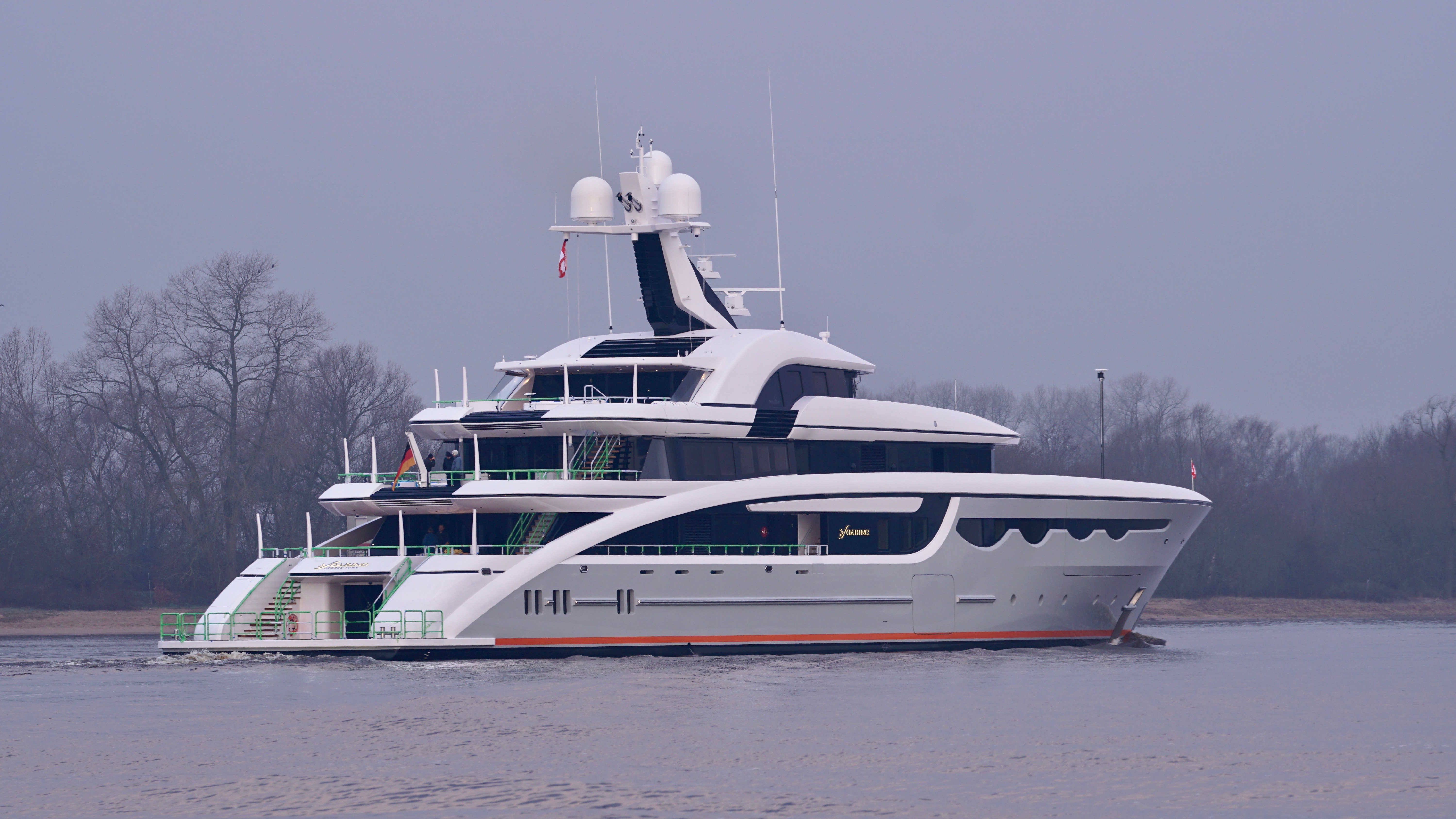 She was launched in January 2020 at Abeking & Rasmussen shipyard. Her successful sea trials were held back in March when she was captured on camera. After returning to the shipyard in Germany, the owner took delivery of his brand new yacht.