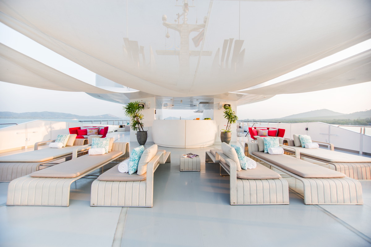 An ideal option for large groups of friends and family, looking for a modern, well-equipped superyacht with a fantastic crew on board, SALUZI has it all! Refitted in 2014 with accommodation for up to 32 guests in 16 cabins, she is now offering an ‘all-inclusive’ charter special to cruise South East Asia’s the Maldives or Thailand.