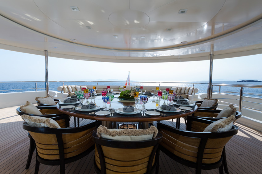 NATALINA A was originally constructed by Golden Yachts for an owner with plenty of experience in owning luxury yachts and was delivered in 2015. She was designed by Studio Vafiadis. One of the special features of this vessel is her ability to accommodated twenty guests, while twelve guests would be the standard in the charter industry. There are eight staterooms on board, including three beautifully appointed owner’s suites. These are spread over main deck, upper deck and bridge deck, all with private en suite bathroom facilities, fantastic views and the best of luxury amenities.