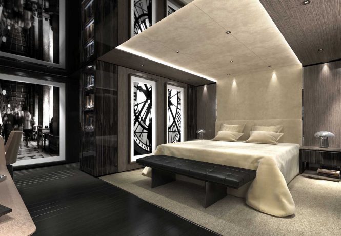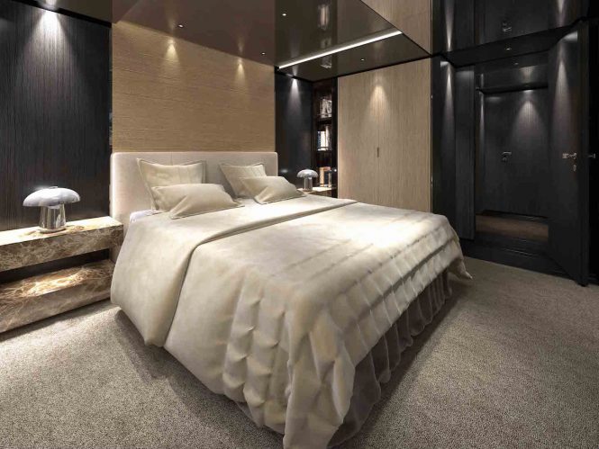 The Owner’s apartment contains a media room that can be converted into an additional cabin and the island bed has floor-to-ceiling windows for 180° views.