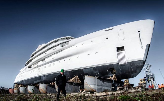 AMELS 78 custom superyacht arrived at the Vlissingen facilities in the Netherlands for outfitting. She is the largest yacht currently being built by Amels with delivery in 2021.