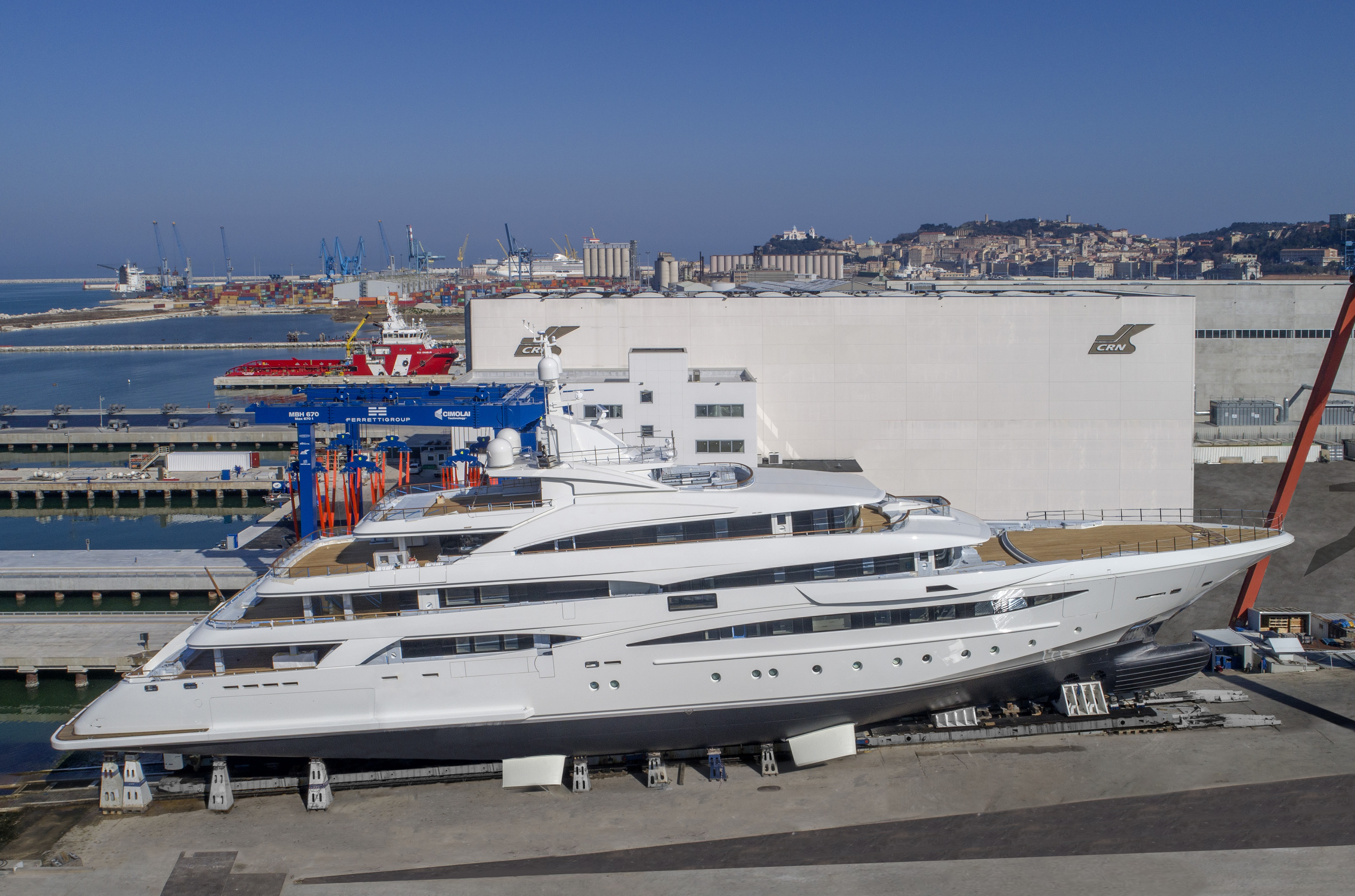 Ancona-based shipyard CRN has moved its 79m/259ft motor yacht CRN 135 onto the slipway at the shipyard in preparation for her launch.