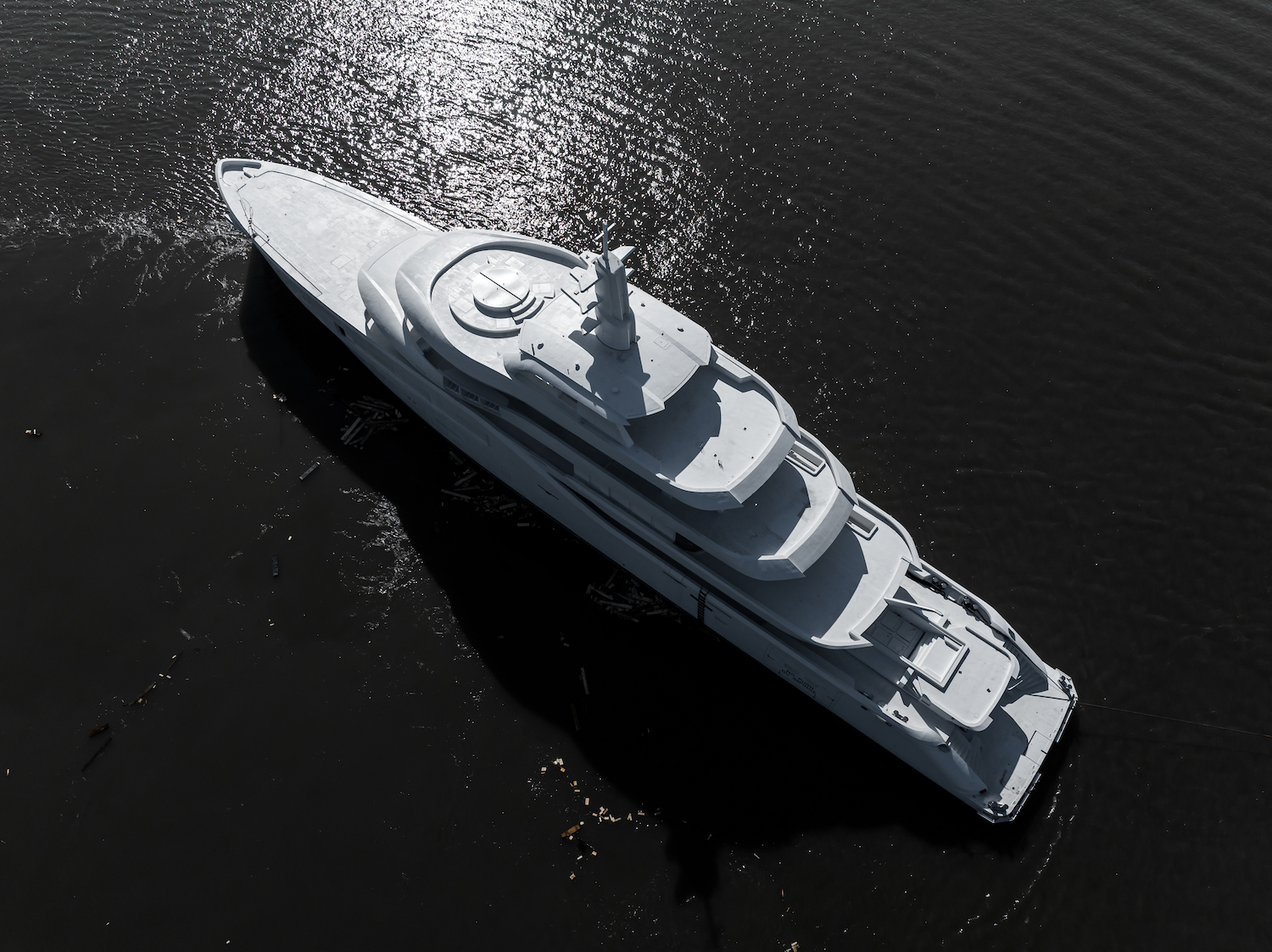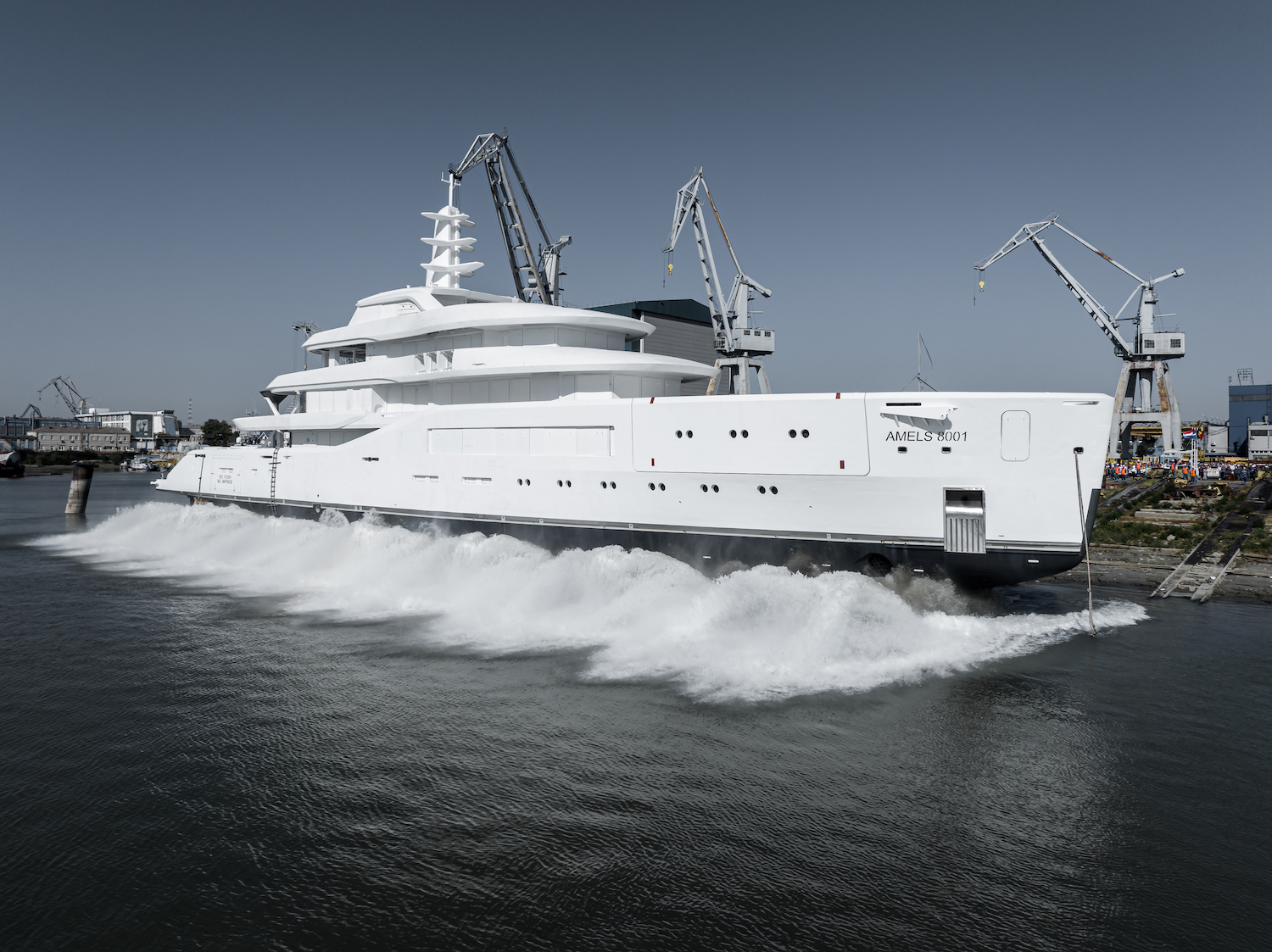 Amels have announced that their latest Limited-Edition superyacht – the Amels 80 – has left the shed and will shortly commence her journey to Damen Yachting’s main shipyard in the Netherlands for final outfitting. The concept was launched in March 2022 and she is expected to be deliver to her new owner in 2025.