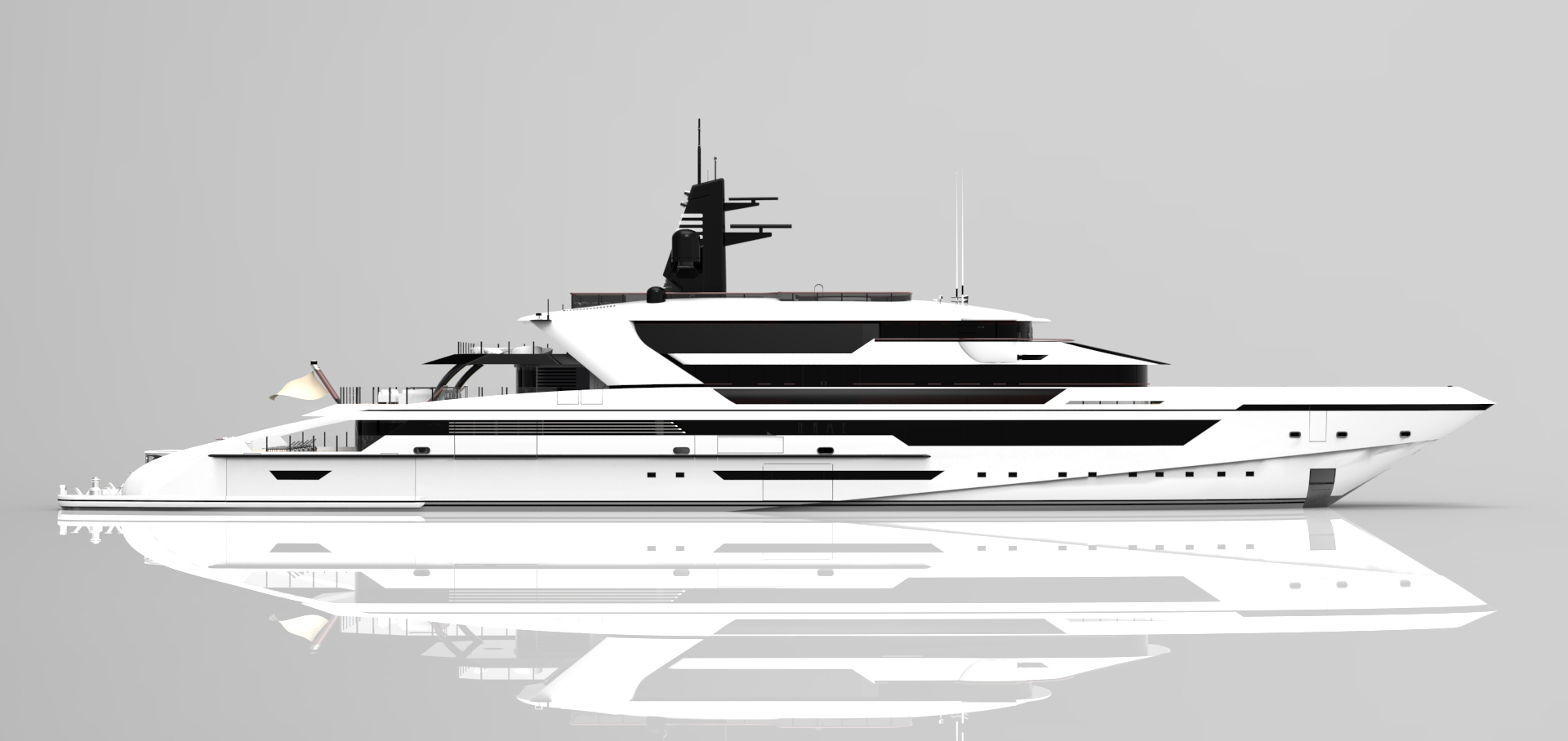 Project T yacht has been developed for long-range cruises around the world, and can store two 10 metre tenders.