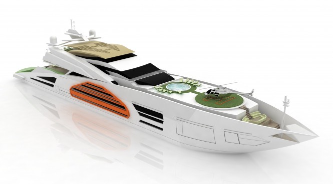 The yacht design features long wings to protect the pool area on the sea view.