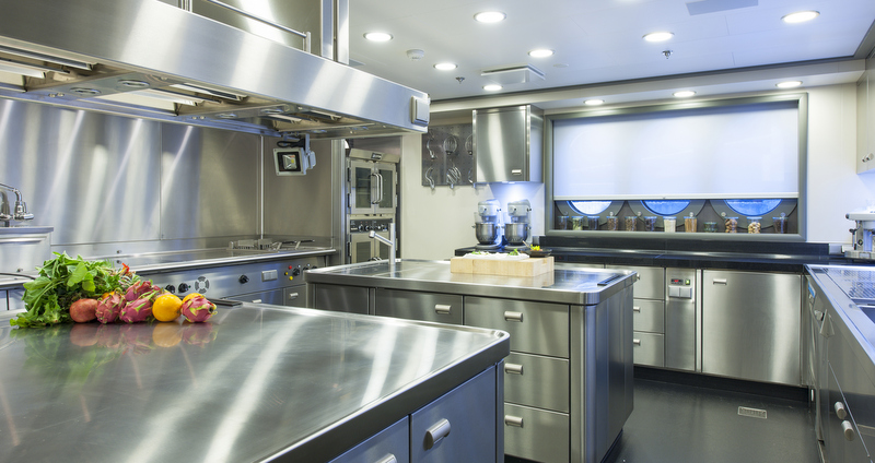 88m mega yacht Quattroelle - Galley Photo by Klaus Jordan