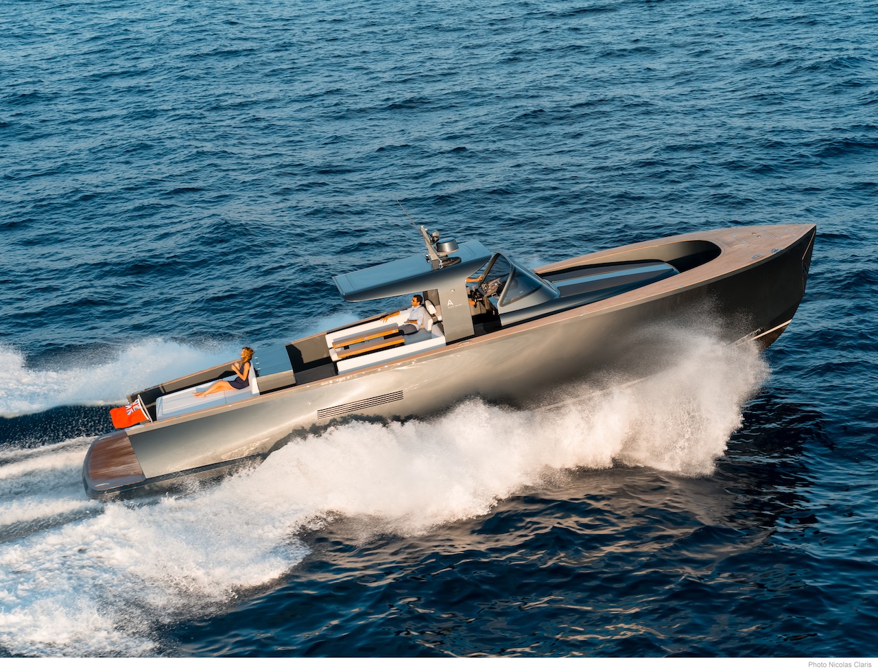 ALEN 55 is not only great for romantic getaways, but is also well suited for families with children or groups of friends, boasting single-level teak deck with deep bulwarks, meaning everyone is ‘in’ rather than ‘on’ the boat. Walk-around aft sunbed provides effortless access to the swimming platform, which makes her an ideal boat to enjoy the sea. The hydraulic gangway doubles as a swim ladder and provides an easy access in and out of the sea.