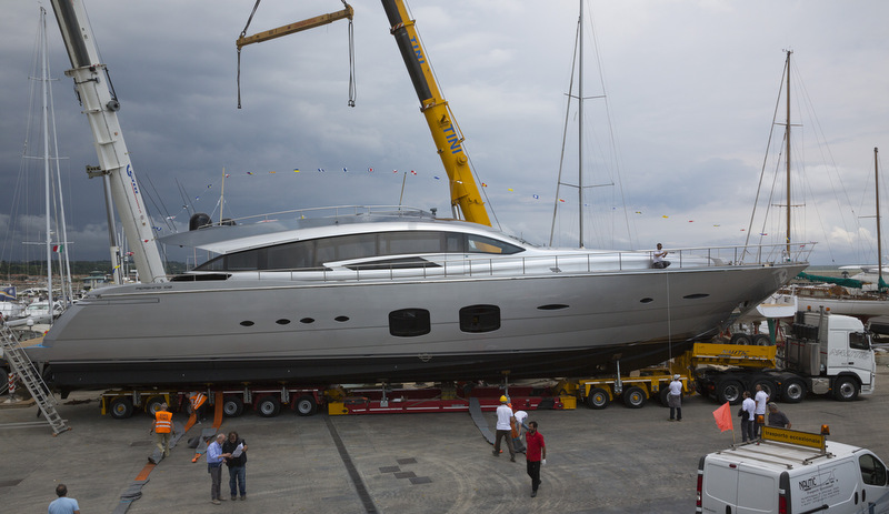 The all-new Pershing 108 motor yacht Hull #3 by Pershing, part of the Ferretti Group, has recently splashed at the Marina dei Cesari in Italy’s Fano. During the upcoming weeks, the interior furnishings as well as non-structural décor of the third Pershing 108 superyacht will be completed, and the technical testing will be performed. Following the official delivery to its European Owner, the vessel will be ready to enjoy the azure waters of the fantastic Mediterranean yacht holiday destinations.