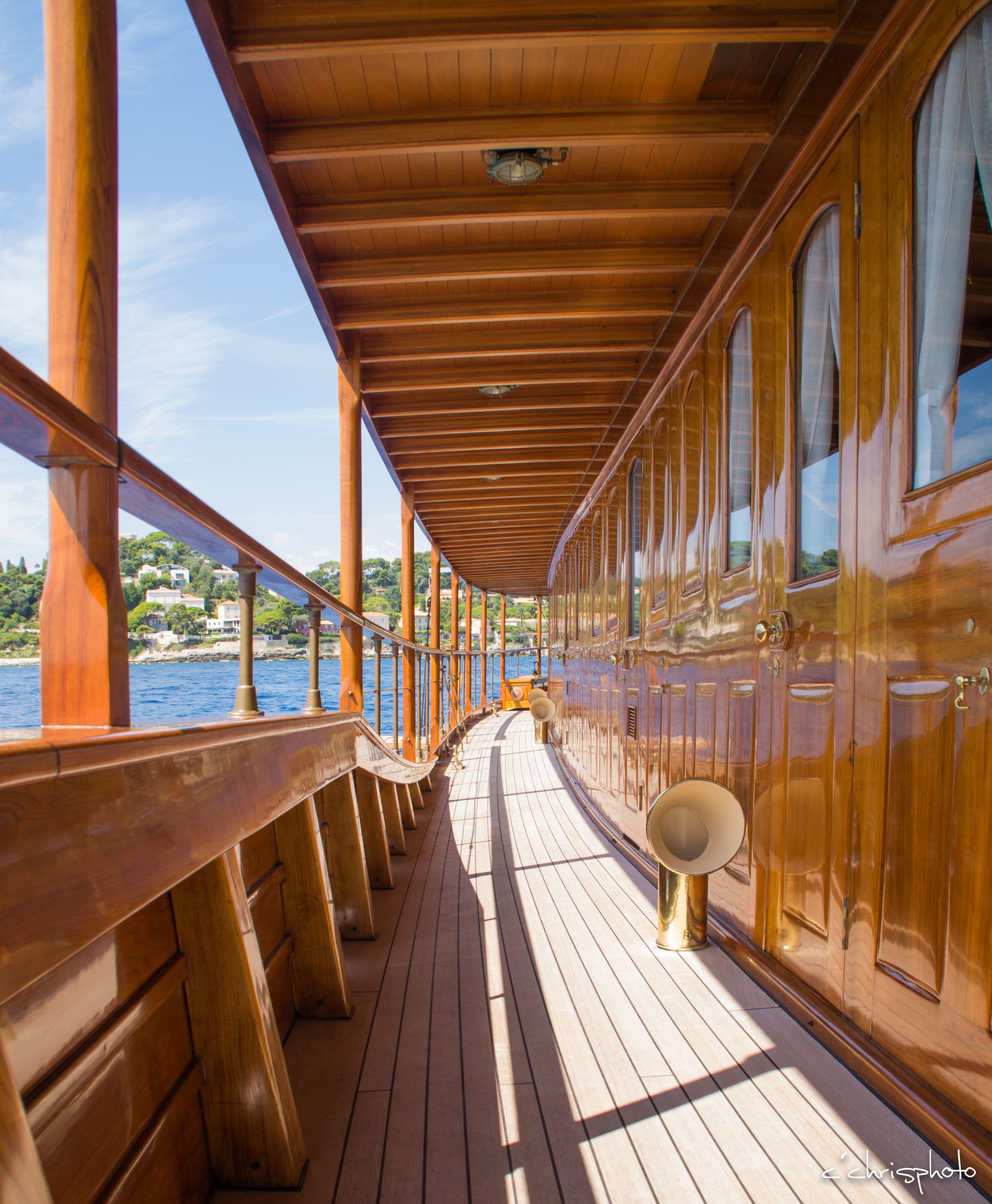 An observation deck can be accessed from the sundeck for spectacular views. Her wooden hull was created from Oak and teak, she powered by twin Gardner diesel engines with speeds of 10 knots. The double-ended yacht is fitted with stabilizers underway.