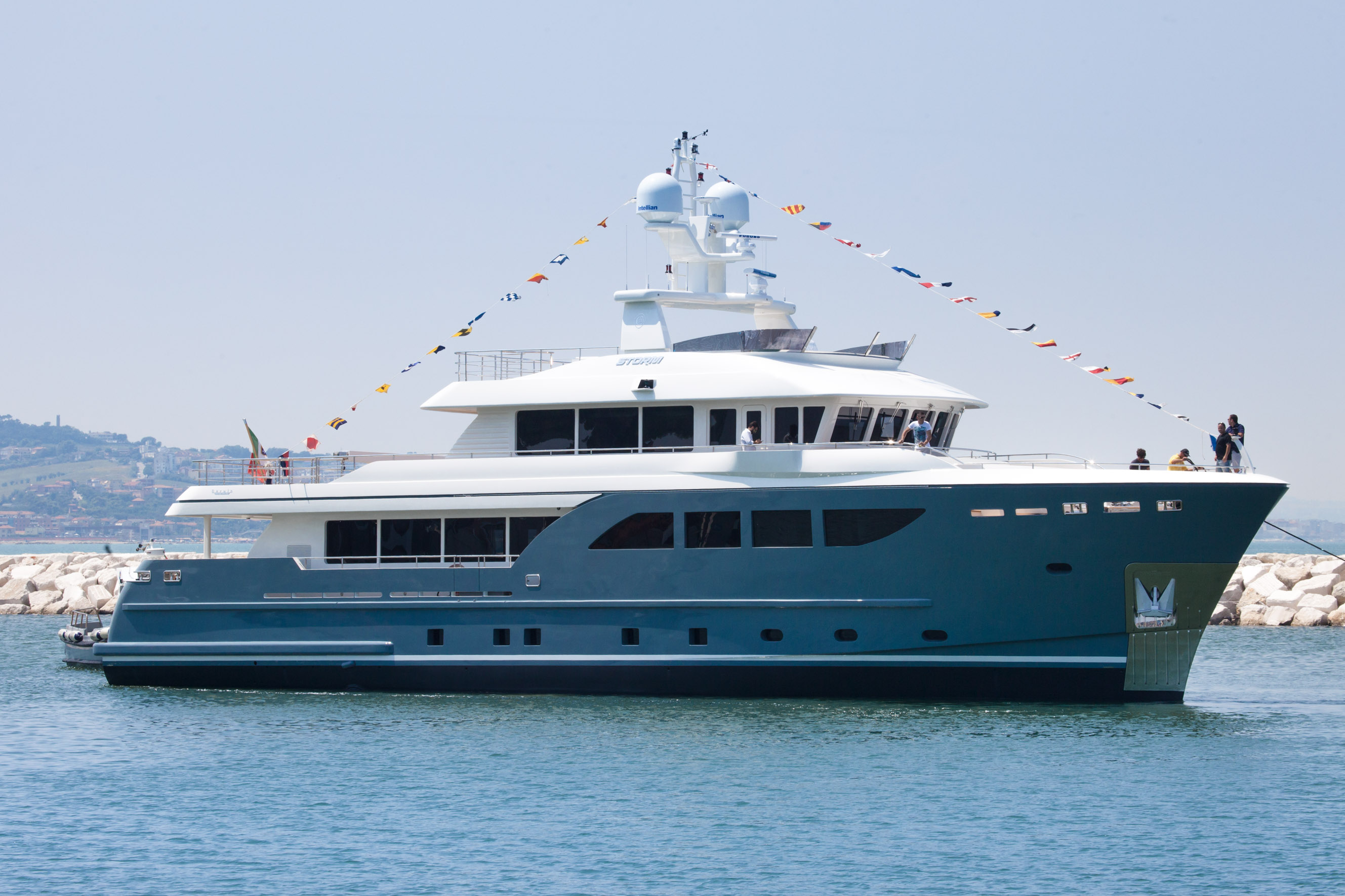 Vasco Buonpensiere, sales and marketing manager of the shipyard, says: “The owner of this beautiful explorer ship was the first customer to have contacted this site in 2010 and, after three years of inquiries and checks with his advisers at the best manufacturers in the world , in 2013 he decided to buy this Darwin Class 107. In addition to this, he chose Cantiere delle Marche after owning a yacht built in one of the best North European shipyards and, consequently, being accustomed to a very high level construction quality. There is no doubt that the baptism of Storm marks an important moment for all those who work here, as well as for the owner.”