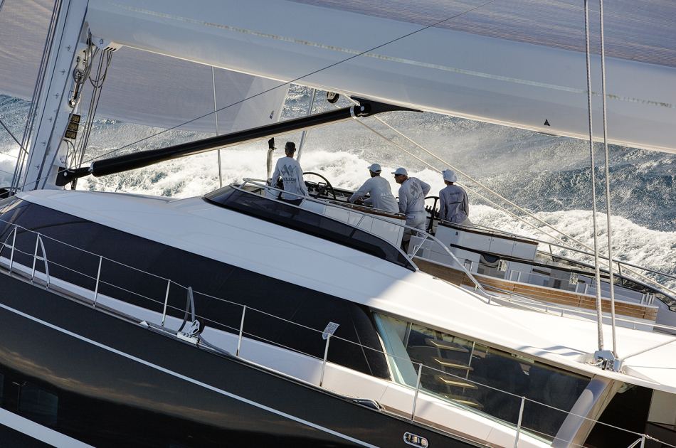 With the owner’s desire of increased performance under sail, the sail area has increased significantly over the last Kokomo. As a result, all the winches, sheets and structures to which these are attached have been scaled up to match. The Alloy Yachts-designed winches are considerably larger in terms of size and pulling power, and demonstrate a step forward in the performance of the patented Alloy Yachts winch technology.