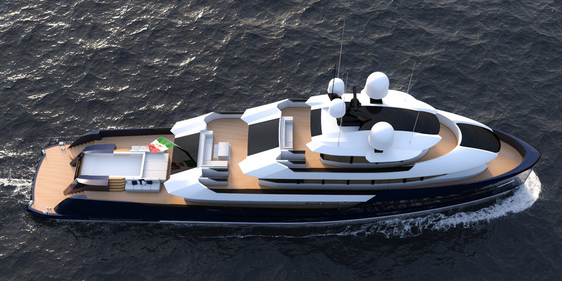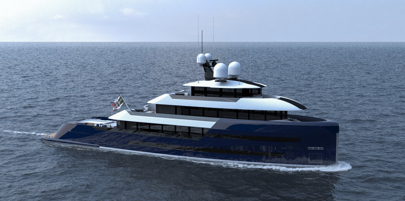 The hull forms of this striking explorer define a displacement hull in the best way, create large interiors providing maximum comfort and allow a better azimuthal propulsion arrangement.