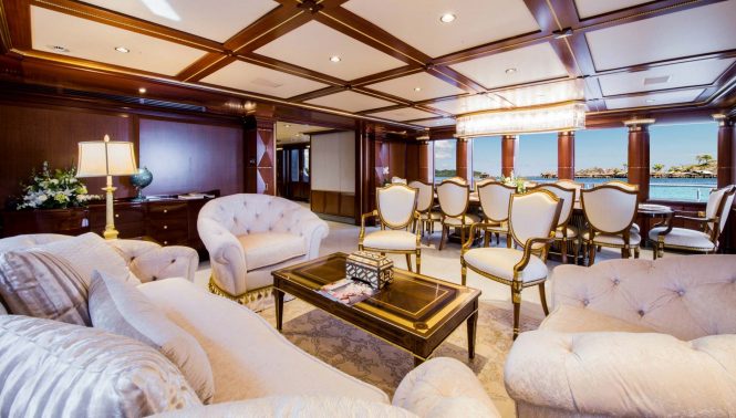 This yacht has an excellent interior and exterior living, with something for everyone, whether the preference is to relax or entertain. Inside, the salon is laid to a contemporary open plan with the formal dining on the main deck.