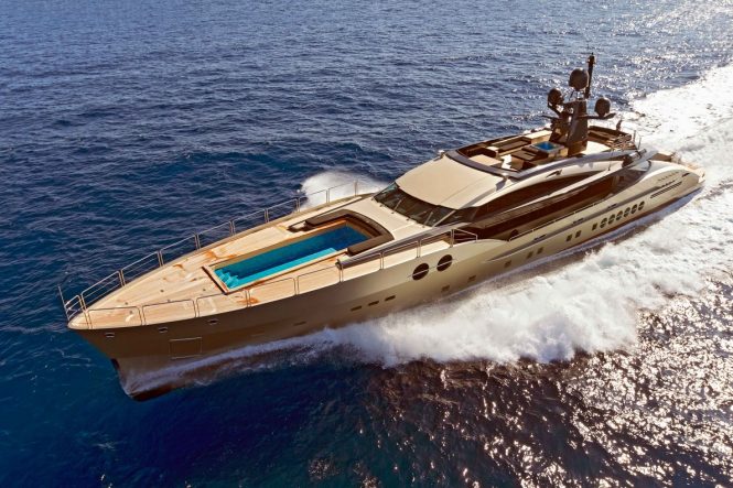 Sleek and stylish DB9 will draw eyes for her profile alone, although what is concealed on her decks is farm more amazing: The foredeck features a swimming pool, while both the main deck aft and sundeck have spa pools. Guests will never be far from a sunbed or sun lounger, and inside the main salon has a piano for live entertainment, a wet bar and widescreen TV, plus generous well-appointed guest cabins that will satisfy the most discerning guests.