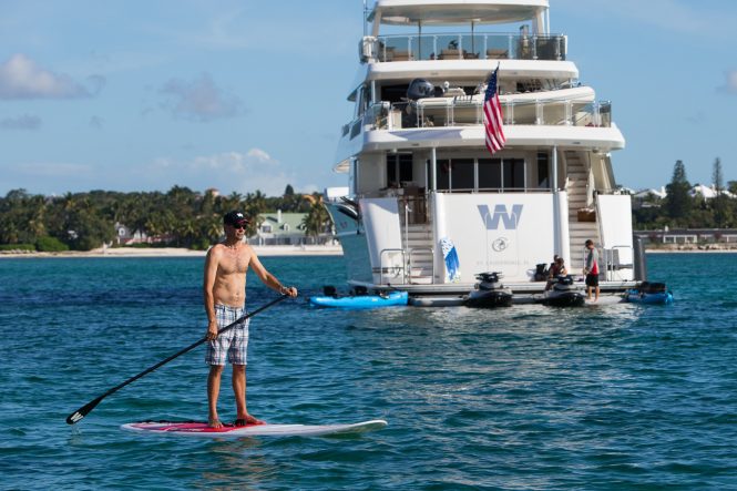 A shallow draft is essential for getting close to the Bahamas beaches, and LADY J (ex.PURE BLISS) provides at just 1.9m/6.2ft. She has earned herself an enviable reputation as a charter yacht, and to keep her title she receives regular refits and upgrades. As such guests return year after year to enjoy the company of her stellar crew as well as the large collection of water toys and great amenities within timeless wood-panelled surroundings.