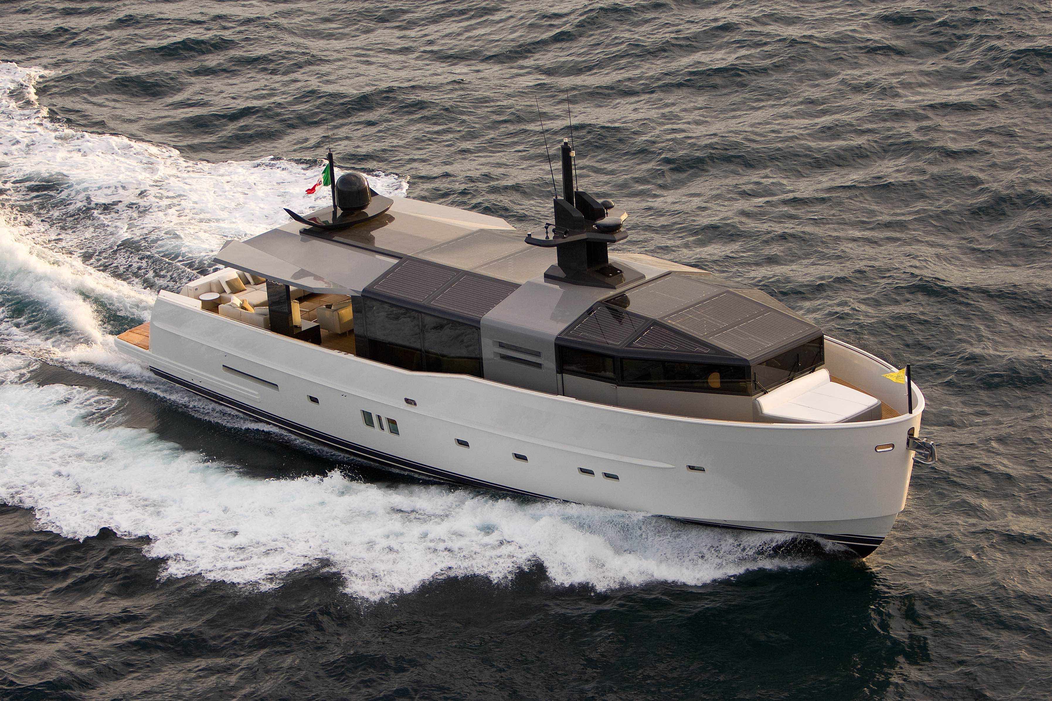 Living capacity is wider than other yachts of the same size. The uniqueness of Arcadia’s project is finding a design solution to integrate solar panels. Yard’s passion for solar technology and clean mobility is finally expressed in this 26mt length and 7.15 width yacht equipped with 40sqm of photovoltaic panels each composed of hundreds of high performance solar cells. That’s how and where any Arcadia Yacht generates almost all the energy for the equipment on board and gives it such excellent class-leading ”green credentials”.
