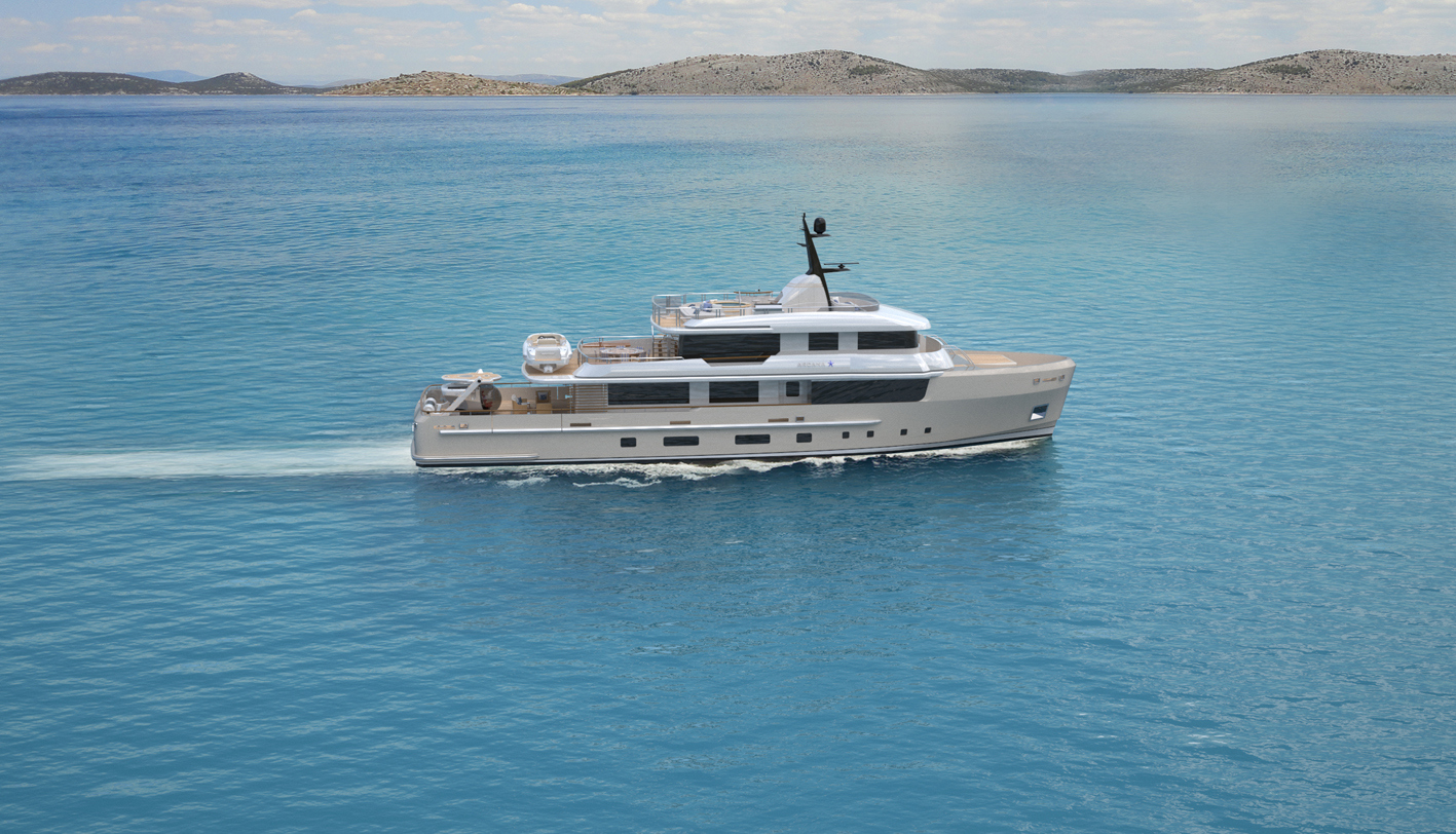Viareggio-based Italian design studio, Horacio Bozzo Design, has unveiled their latest superyacht concept: ARCANA, designed based on “Hansen Marine Exploration” concept to safely and efficiently explore the oceans with minimum impact to the environment. This beautiful 35-metre explorer boasts plenty of special features, including a three-seat submarine.