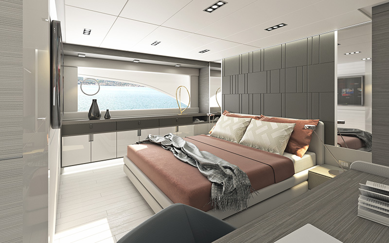 The IBIZA 85 is unusual in that she is completely customised and offers high-quality design elements and engineering that have never before been implemented in a yacht in this size category. She is also designed for ease of use for all ages, from the youngest guests to the oldest by providing safety rails around the walkways, a hydraulic swim platform and having the cockpit and main salon flush on the same level. As such, she is ideal for multi-generational families and accommodates up to 10 guests in 5 en-suite cabins: 1 Master suite, 2 double cabins and 2 twin cabins.