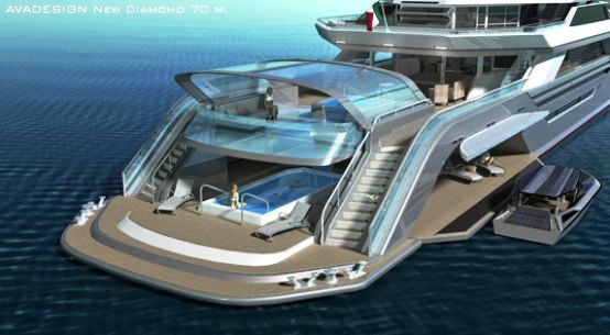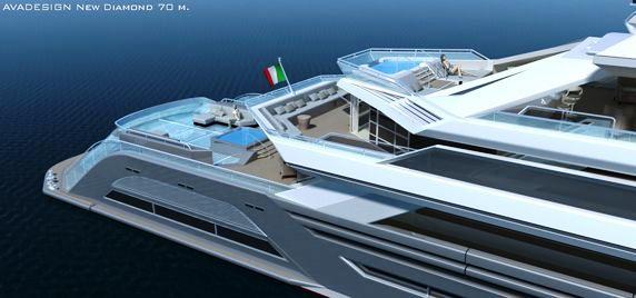 The New Diamond by Avadesign, the 70 meter concept vessel designed by Andrea Vastanomay well become a limited series ranging from 70 to 120 meters, the number of decks will be subjected to size, keeping the features same though. “Our goal is to respect this concept on all models, increasing the number of decks, but otherwise maintaining the same basic design,” explains Vastano, founder and designer at Avadesign.