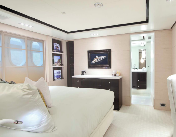 Located on the main deck is the Owner Suite, boasting an unparalleled 180° view, a separate his and hers bathroom, a private study, an en-suite screening room and private sun terrace with a six-person Spa Pool. The guests cabins are just as luxurious, featuring customised woods, stones and fabrics that set the stage for both modern and antique accent pieces, selected from all around the world.