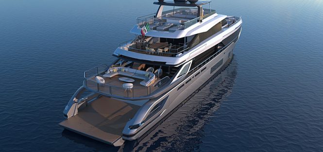Alberto Mancini is responsible for the exterior styling and the interiors come from Antonio Salvagni, and a range of interior layouts offering five or six-cabin setups are available to personalise the rooms for each individual Owner. Among her features is a large sunbathing area to the stern of the lower deck, a spacious main deck salon and a formal dining area on the upper deck.
