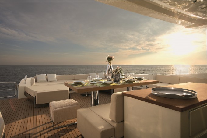Azimut Yachts proudly presented its new flagship yacht from the Open S range earlier in 2010. A masterpiece of yacht design that combines Italian style with the latest technology the World premiere for the new Azimut 103SL took place at the Dubai Boat Show 2010. This exciting new Super Sport Yacht was the creative concept of Stefano Righini, designer for all Azimut yachts for over a decade, and the in house Azimut Design Team, who have combined their talents to design a prestigious super sport yacht.