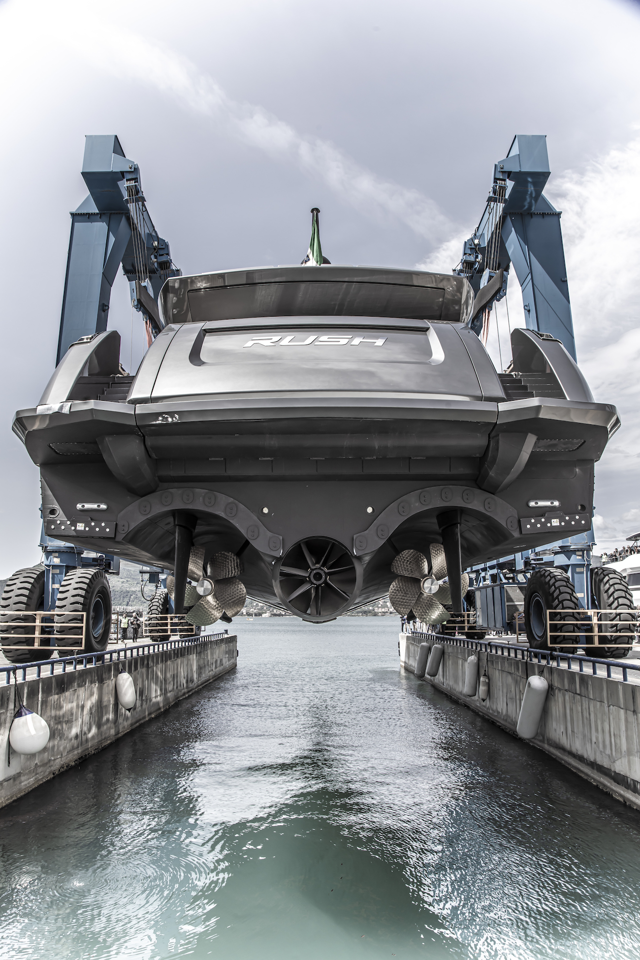 Luxury yacht RUSH by Baglietto hitting water
