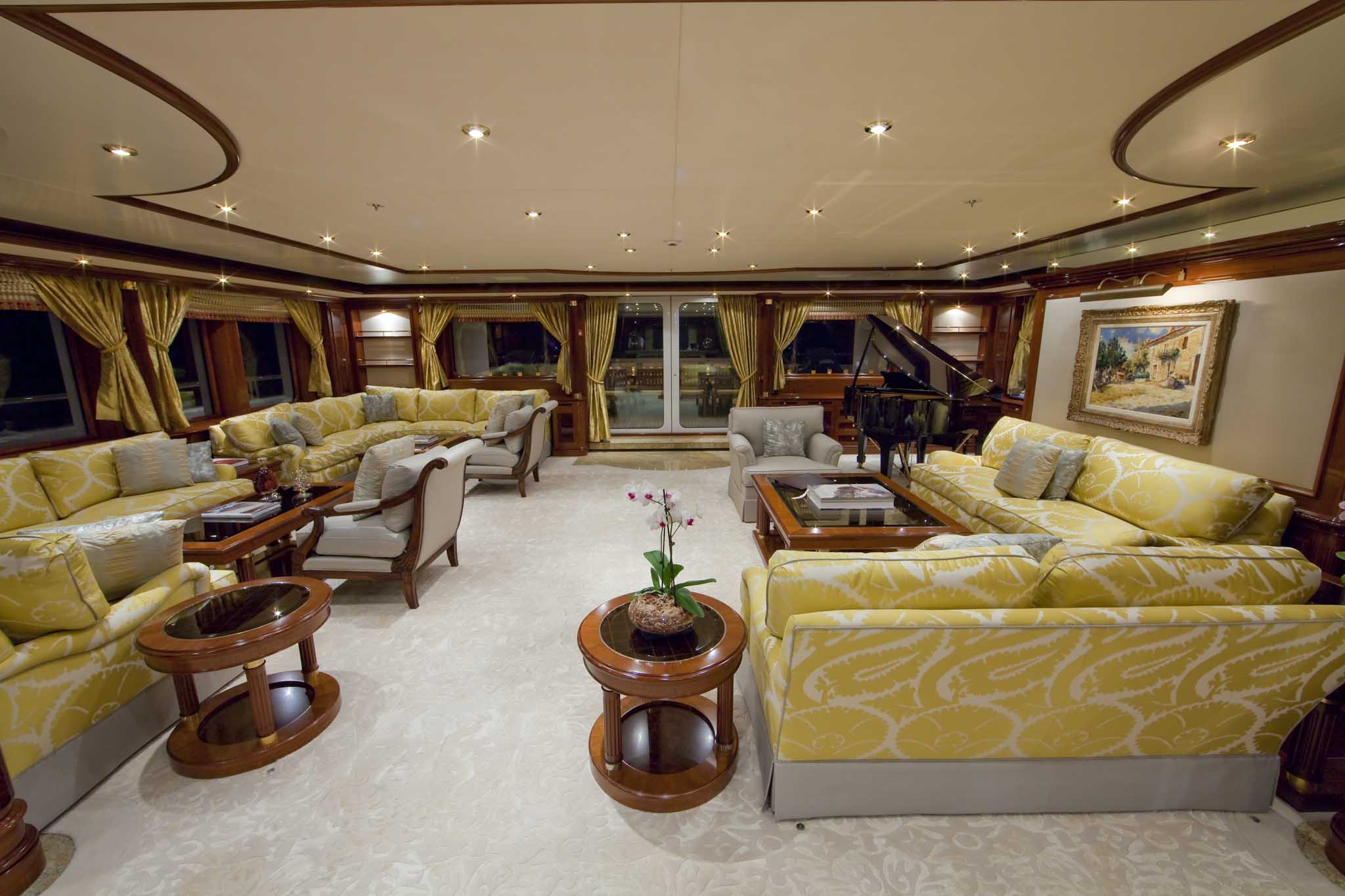 One of the few superyachts licensed to sleep more than 12 guests while on charters, luxury yacht SHERAKHAN is also one of the most impressive: The glamorous formal dining room and main salon form a lower and upper atrium respectively main salon forms the upper atrium and every exterior deck space has received the highest attention to detail for alfresco dining and a tranquil outdoor living environment. The Master suite has its very own Jacuzzi and terrace for a private relaxation space, while the rest of the guests have an abundance of sun loungers and sofas to choose from.
