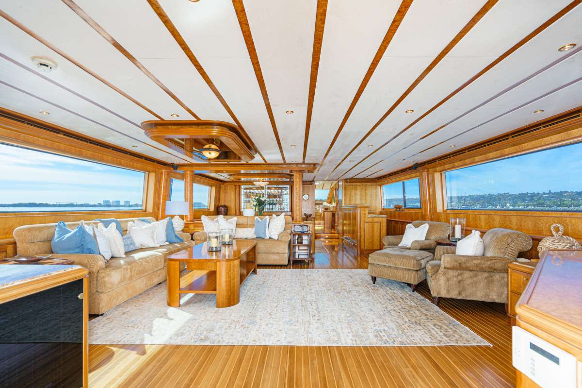 The classic styling of 2005-built Horizon tri-deck motor yacht ALMOST THERE offer charter guests beautifully maintained al fresco and interior spaces thanks to a 2021 refit. She is available for charter in California and the Pacific Northwest for groups of up to six guests.