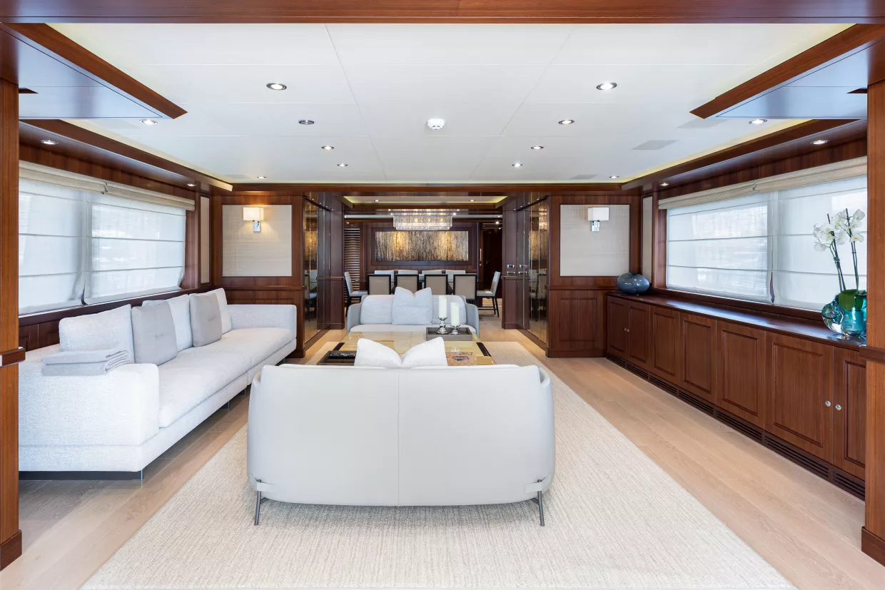 Primary charter guests will be treated to the ultimate in luxury in their own private apartment positioned forward on the main deck. The stateroom, lounge, his-and-hers bathrooms and private balcony create a haven away from the other guest accommodation. The family friendly layout includes two more double and two twin suites (with additional pullman bunks) making the yacht perfect for a multi-generational family charter.