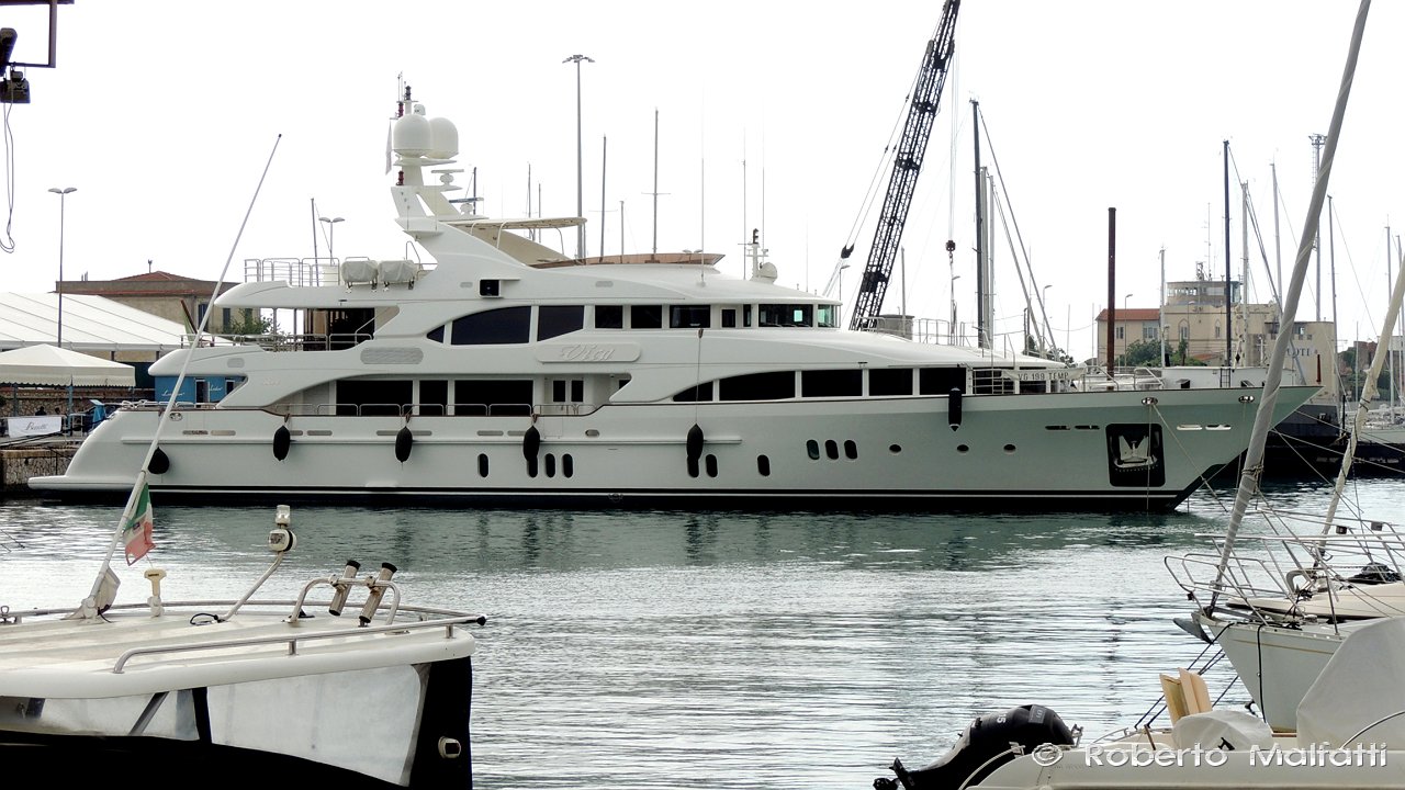 The beautiful 44-metre superyacht VICA was spotted by Roberto Malfatti at the Benetti dock in the port of Livorno in Tuscany, Italy. Launched by the leading Italian builder Benetti in 2010, luxury motor yacht VICA is the 13th Benetti Vision series BV14 vessel, magnificently designed by Stefano Righini.