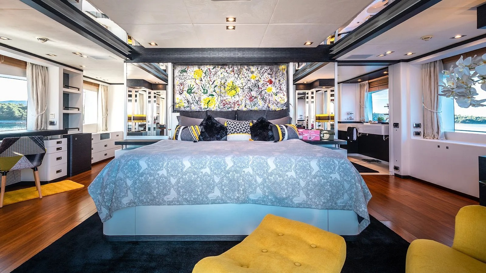 A sky lounge is ideal for relaxing and entertaining, with a more casual atmosphere cocktail bar and entertainment systems. In addition, the VIP suite is located forward and to starboard.