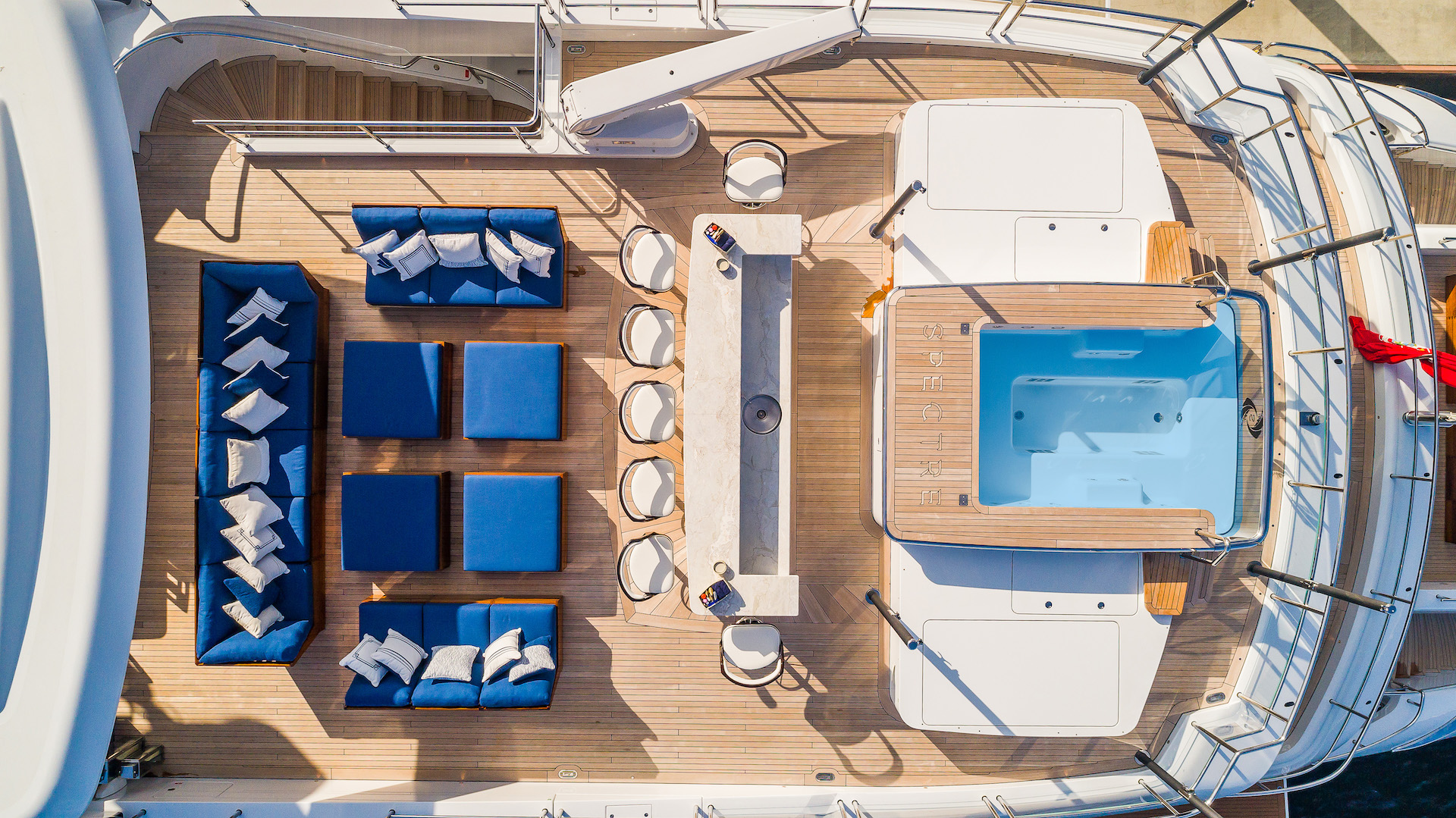 Her lavish amenities include swimming pool, helipad, Jacuzzi, beach club, elevator, outdoor bar, tender garage and swim platform.