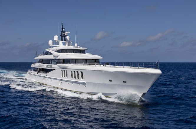 This summer she will be cruising in the Mediterranean charter grounds and is available for charter from US$ 600,000 per week plus expenses.