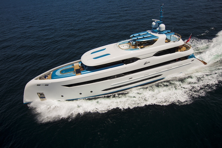 CAT C 32 1915 diesel engines give super yacht ELADA a maximum speed of 22 knots and a cruising speed of 17 knots. She has a beam of 8,90 meters.
