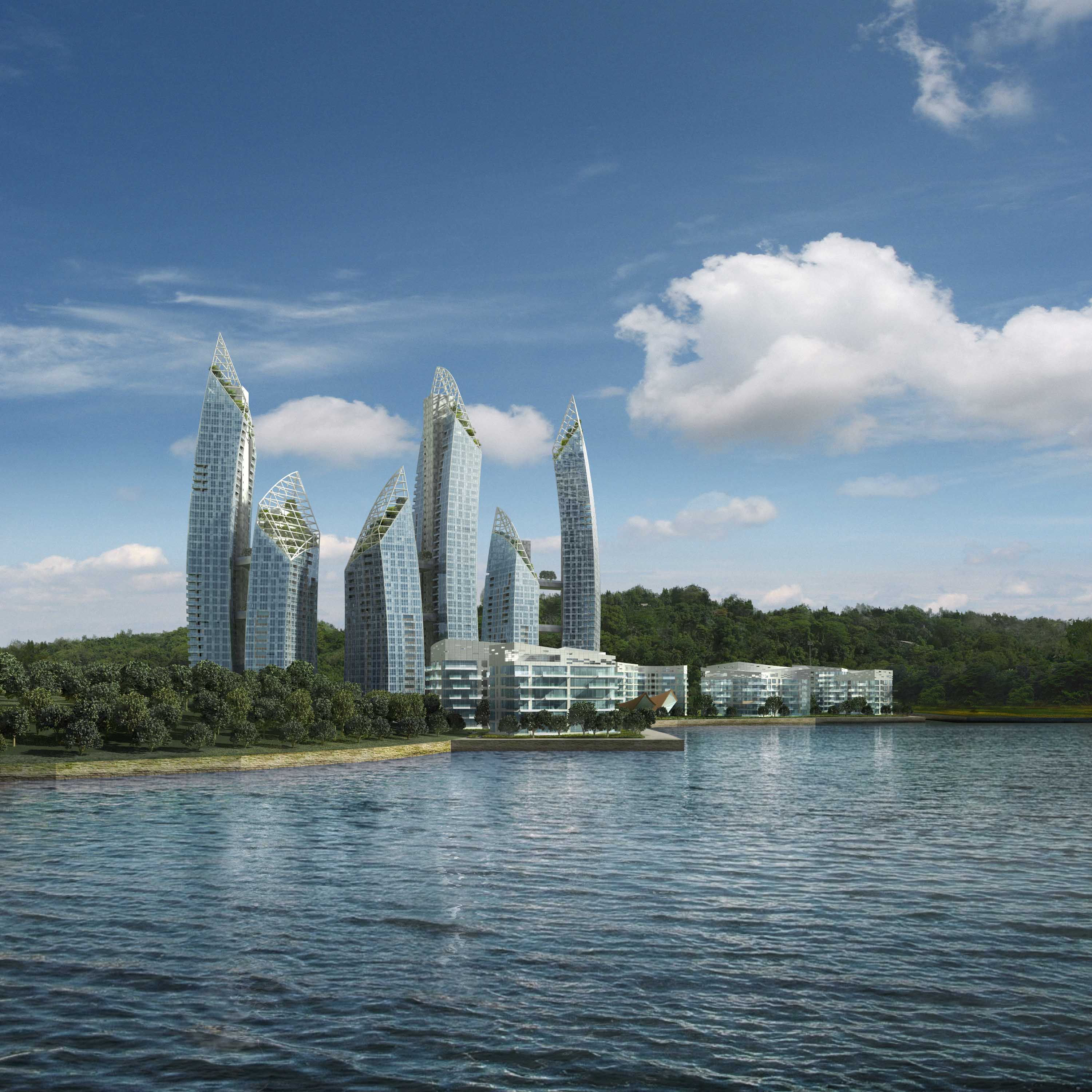 Combining heroic forms and classical elegance, the towers rise spontaneously as ‘beacons of light’ at the gateway of Singapore’s southern waterfront hub comprising Keppel Bay, Harbourfront and Sentosa.