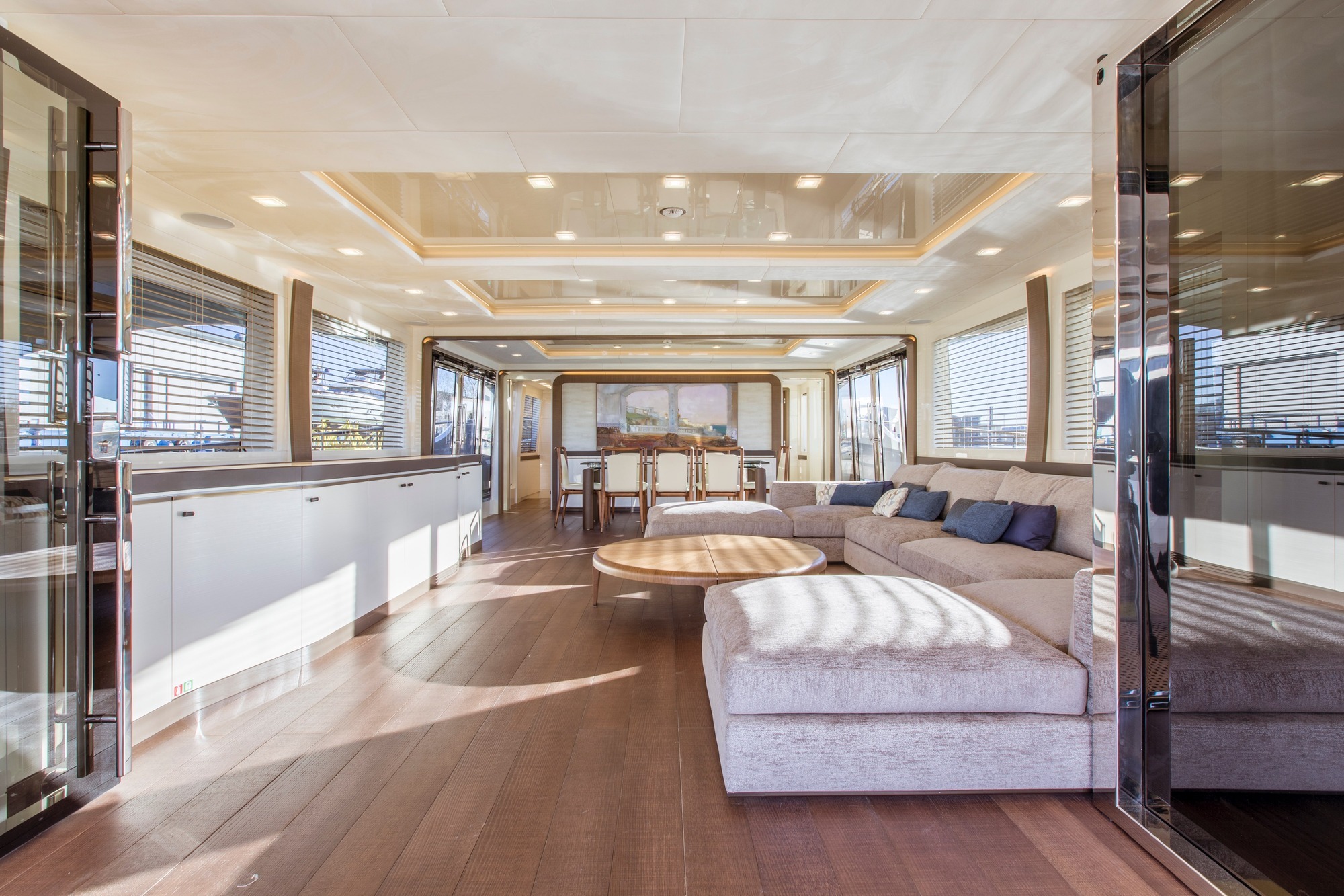 The abundance of space is used to create a massive Owner’s deck, where there is a copious Master suite and two private lounges as well as a large cinema that can be accessed by all guests.