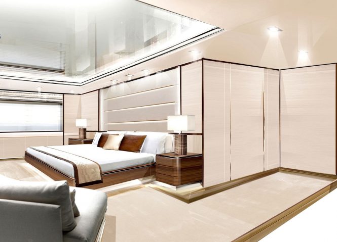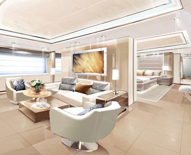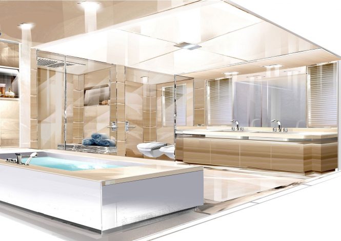 The upper deck hosts the Master suite and private facilities include an aft salon, a walk-in wardrobe and a Jacuzzi in the en-suite bathroom. The upper deck aft can also be sued privately or shared with other guests to for alfresco dining and outdoor relaxation while watching the sun sink over the Cyclades or the Adriatic Sea. On the sundeck, there is another lounge for guests to spend time outdoors with the best views on board.