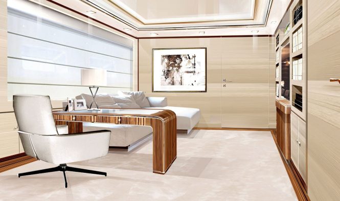 57m/187ft superyacht O'MATHILDE was launched in 2018 and is ready for charter in the Eastern Mediterranean. Her beautiful pale interior styling comes courtesy of Giorgio Vafiadis of Interin Studio and there are plenty of places for guests to spend a serene afternoon or gather for an exceptional special event.