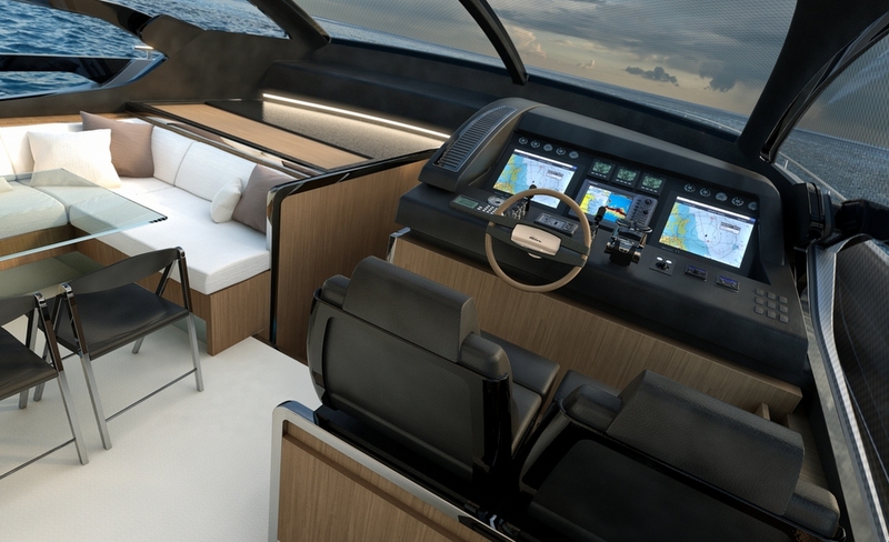 “Light, space, style…” – says Mauro Micheli. “This new coupé perfectly fits into the groove of an established Riva tradition: create boats with strong sporting spirit, offering superior performance and comfort by combining the characteristic of a flybridge with those of an open. The large glass surfaces with double curvature, integrated into a single layout, ensures enormous spaces comparable to those of larger size yachts. I designed the Riva 76’, minimizing the conceptual barrier between inside and outside to allow the owners to truly live the sea with authentic style which is, now more than ever, a need. In this historical moments we must regain our optimism, allowing our lifestyle to express it, even playing a little. The Riva 76′ definitely expresses this aim: the strong desire to share what inspires us and we crave for, with the one we love.”