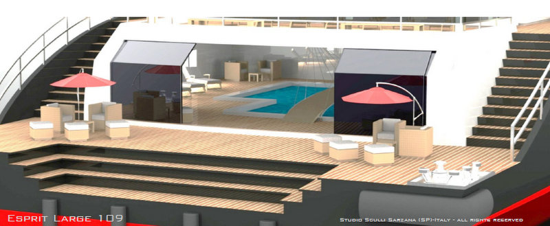 Latest renderings of the 109m super yacht Esprit Large 109 concept, superbly penned by Studio Sculli from Italy.