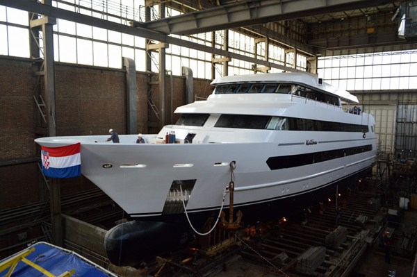 Superyacht Katina hitting the water - Photo by Brodosplit