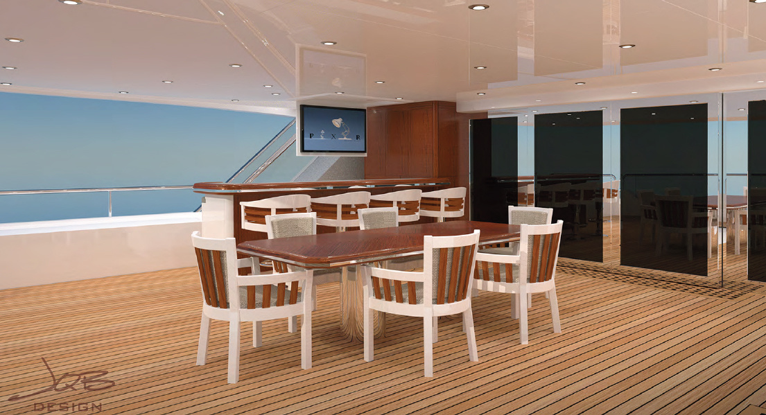 Due to a careful management of the hight of decks, the superyacht will feature spacious interior layout and maximised 10-metres beam and still maintain a low, sleek and aerodynamic profile.