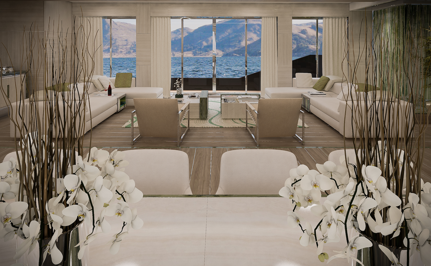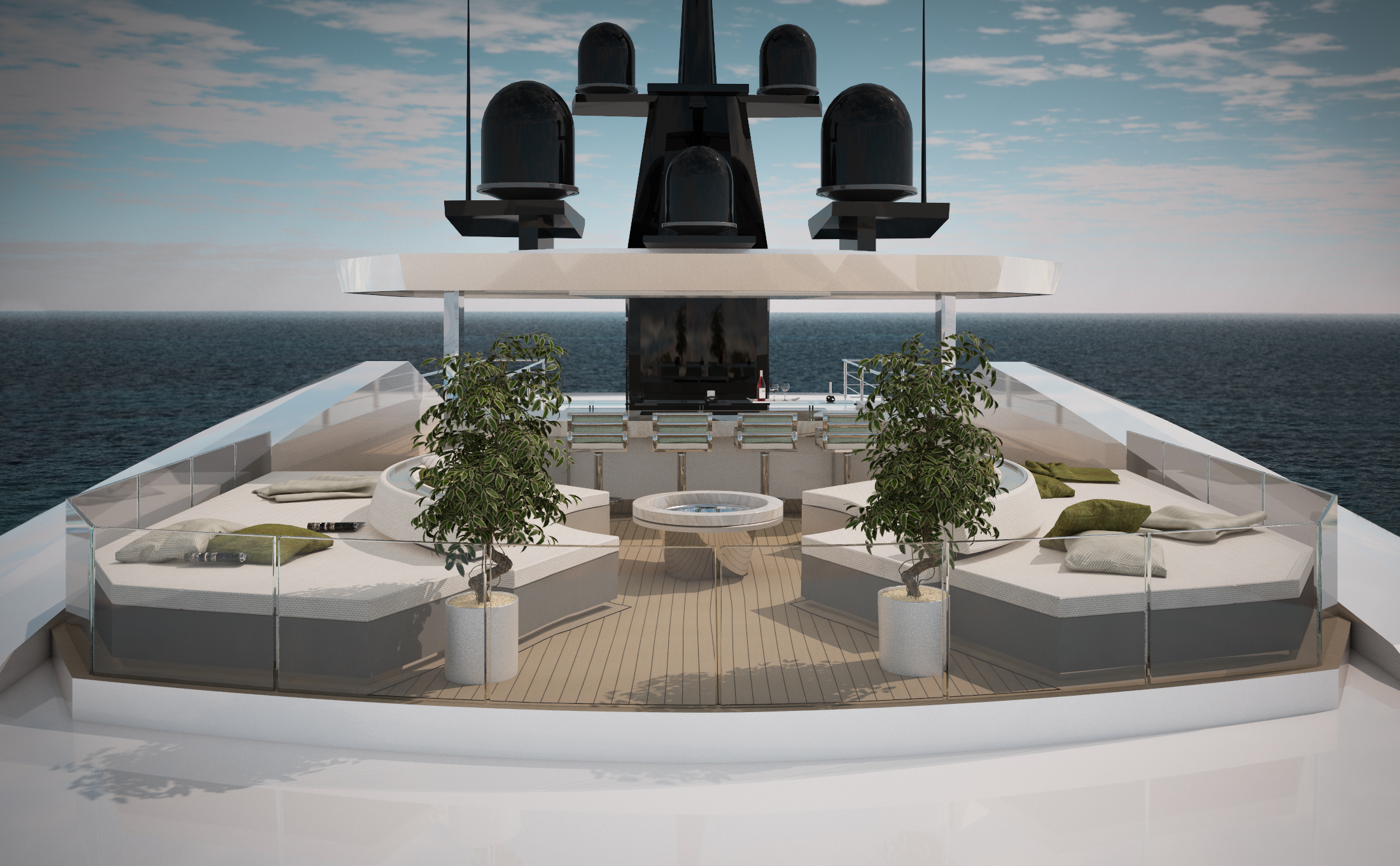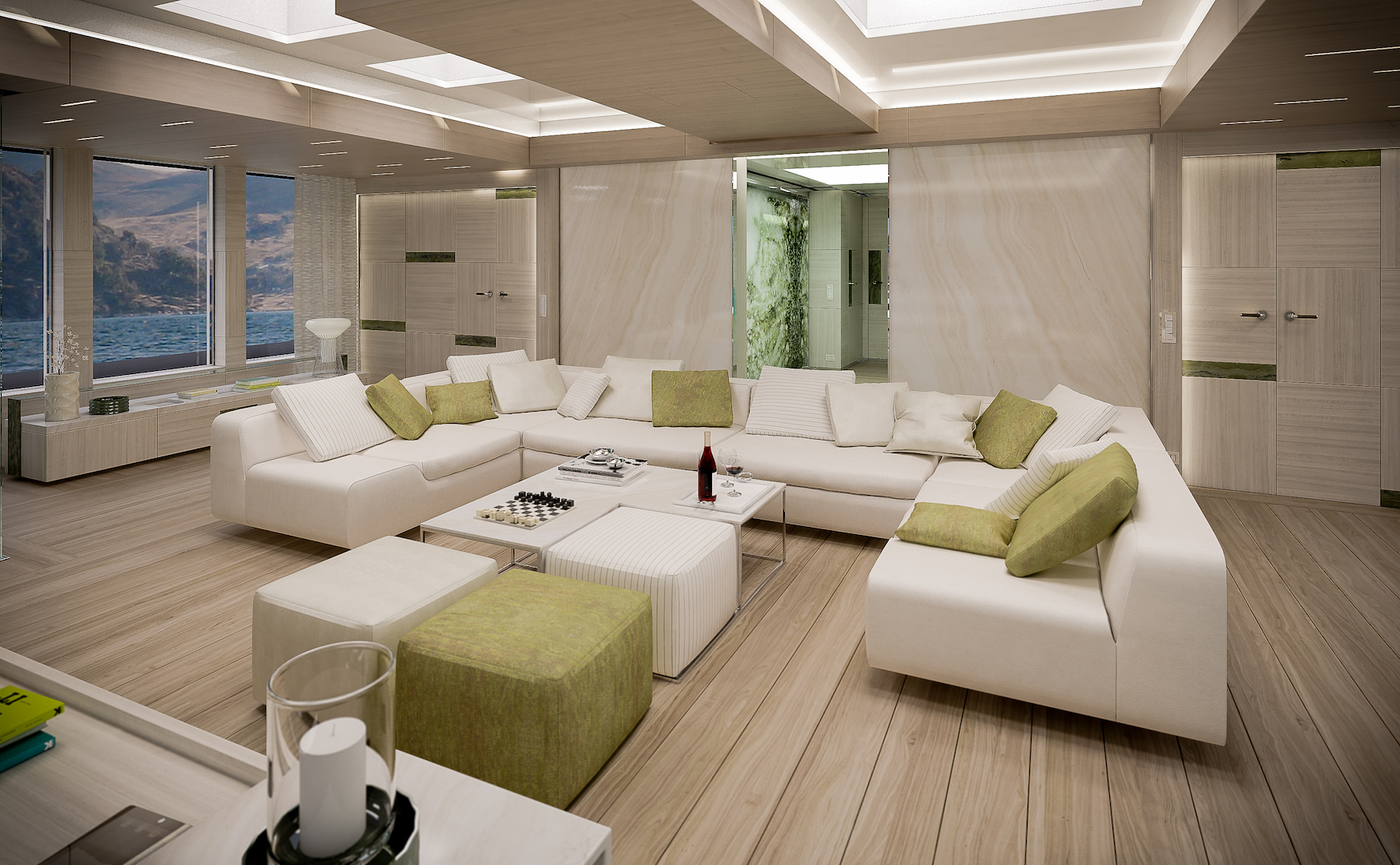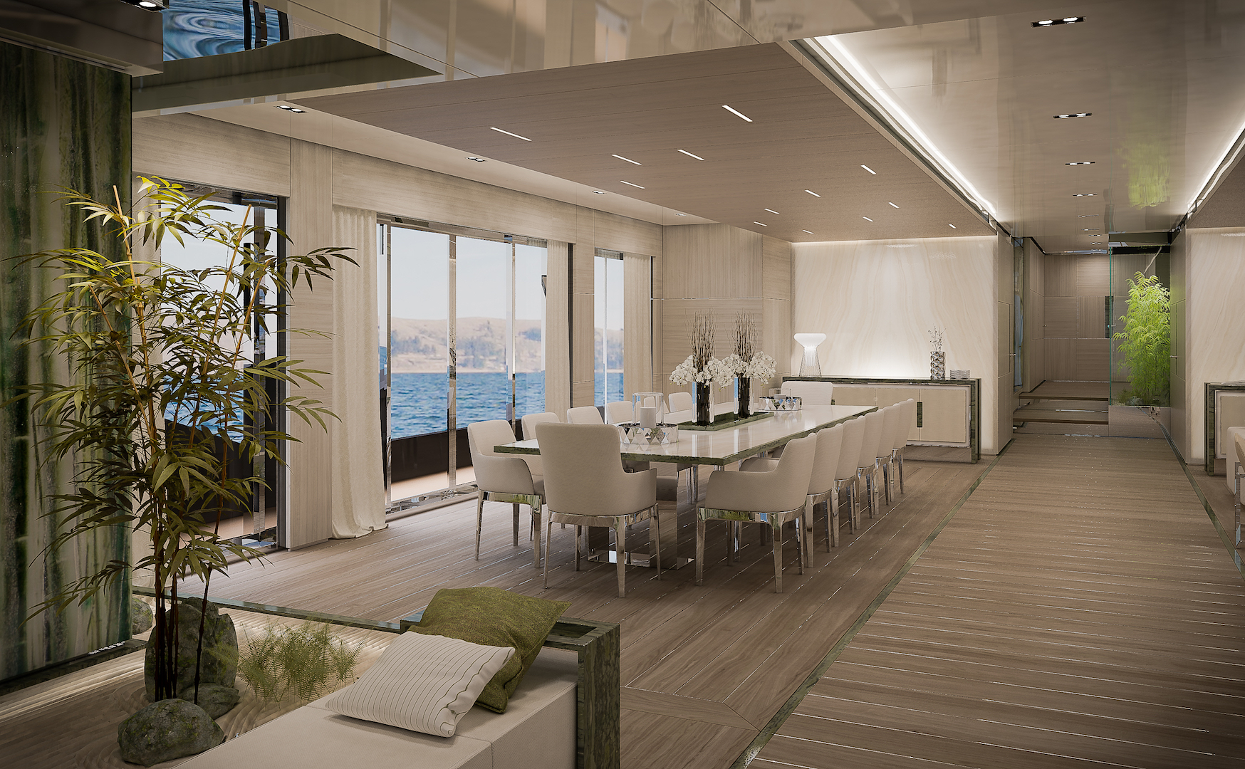 The Owner’s privacy has been particularly emphasised while developing the interior layout. Sky-lounge business meeting room will have a direct access from the external tender arrival position.