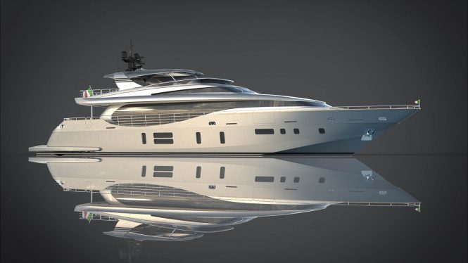 The exterior styling was created by the shipyard and incorporates a spacious swim platform as well as a tender garage which can be used as a beach club. Cristiano Gatto produced her interior appearance. The rooms will offer floor-to-ceiling glass panels for excellent views and natural lighting a galley custom made by Italian kitchen designer Boffi, and custom furniture will be installed to match the client’s preferences.