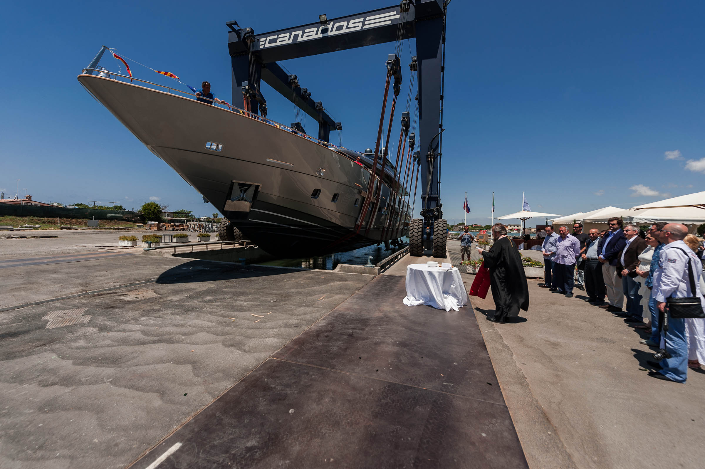 It was quite a special launch ceremony as it was celebrated by a Russian Orthodox priest as the owners asked for. More than 60 guests took part into the ceremony. The latest Canados 120 superyacht Far Away is destined to a Russian owner who will sail through the Mediterranean in the coming season.