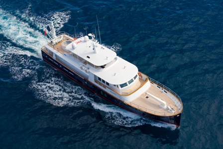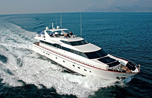 Motor yacht CALAF features a fantastic blend of classic and contemporary styling thanks to her classic exterior design build combined with a fashionable, modern interior. In 2007 the yacht was re-fitted to the highest specifications. Her spacious saloon and dining area are dominated by strong lines and bold colours. In contrast, her full-width Master and VIP cabins feature a selection of muted colours and delightfully soft fabrics.