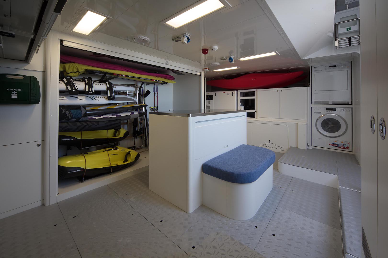The layout of the garage has been customised to accommodate a great range of water toys, tenders as well as a diving centre.